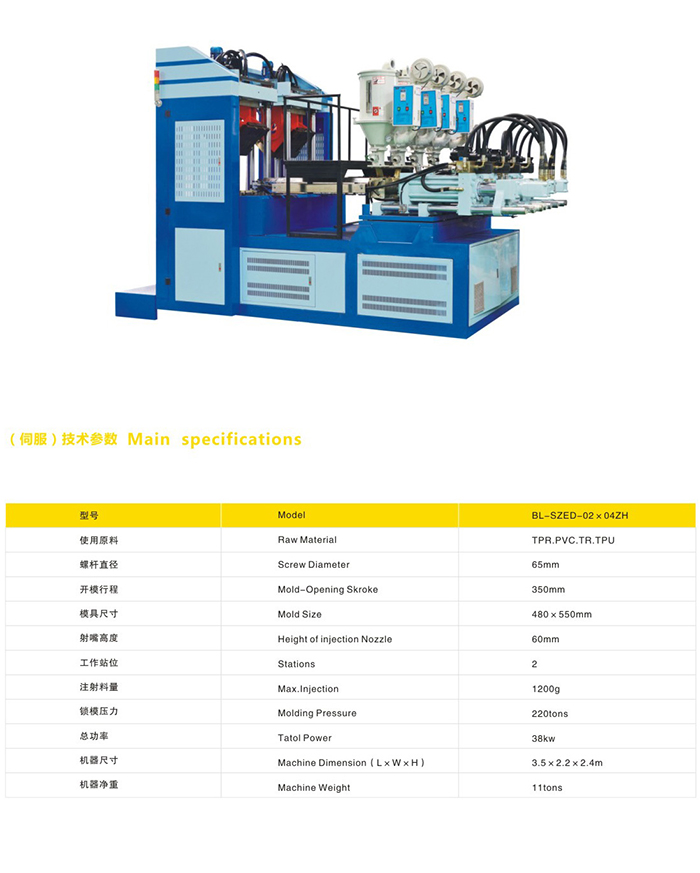 高效節(jié)能固定座全自動(dòng)肘桿式兩站四槍雙色塑膠鞋射出成型機(jī)肘桿式注射成型機(jī)